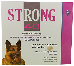 Strong 40: Spinosad 300mg, excipientes c.s.p. un comprimido de 750mg.