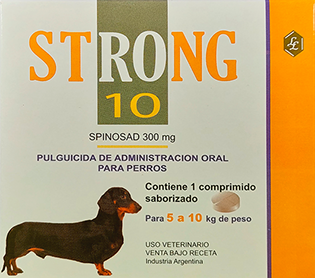 Strong 10: Spinosad 300mg, excipientes c.s.p. un comprimido de 750mg.