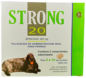 Strong 20: Spinosad 300mg, excipientes c.s.p. un comprimido de 750mg.
