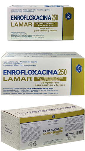 Cajas de 10, 100 y 500 comprimidos (enrofloxacina 150 y 250mg).